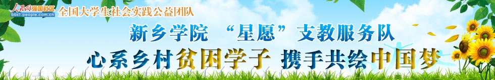 “星愿”義務(wù)支教服務(wù)隊于2009年成立,現(xiàn)有支教志愿者120余名。除多次開展暑期社會實踐支教活動外,在校期間他們還堅持每周二下午赴貧困小學義務(wù)支教活動。五年來,他們參與支教的次數(shù)達100余次,9000余小時課時。他們與新鄉(xiāng)市紅旗區(qū)平原小學、封丘縣潘店鎮(zhèn)老莊小學建立了長期幫扶關(guān)系,還在延津縣榆林鄉(xiāng)大榆林小學、夾堤小學建立了愛心支教服務(wù)基地。