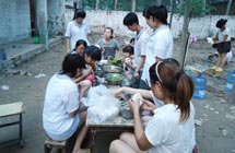 志愿者宋文靜是付里莊小學手語老師,是團隊隊員和孩子們公認的富有童趣的一小老師。她經(jīng)常陪孩子們做游戲,陪他們看哆啦A夢。但就是這樣一位老師,上了課堂卻像換了個人似的,非常嚴厲。志愿者王蒙苗是付里莊小學口才勵志課老師。課堂上,她認真教學,課堂下用勵志故事激勵孩子們努力學習。因為經(jīng)常照顧生病的孩子,孩子們認為她最有愛的一個老師。志愿者孔令陵是后勤人員之一及封丘支教教務(wù)主任。她每天都會在五點去最近的商店買菜,然后摘菜、洗菜,做整個團隊和部分孩子的飯菜,保障全隊生活