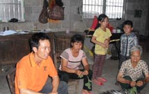 我被分到了第三組,也是這次家訪去的最遠(yuǎn)的地方。和董啟凡,楊愫愫等隊(duì)員一起需要走過崎嶇不平的山路,爬上一座一千多米的高山。有的隊(duì)員穿的是短褲,當(dāng)?shù)厣缴嫌幸环N草是有著尖利的刺,劃傷了隊(duì)員的腿,這提醒了我們出去家訪一定要穿長褲。一個(gè)半小時(shí)后,他們到了第一位學(xué)生陸純的家里。陸純的家由于在建新房,全家人在簡易帳篷里生活,條件十分簡陋。志愿者受到了陸純家長的歡迎,陸純的班主任沙士博也跟家長溝通了陸純?cè)趯W(xué)校的表現(xiàn)和情況。陸純是一個(gè)比較聰明的孩子,數(shù)學(xué)成績比較好,但平時(shí)比較貪玩,上課的時(shí)候不愿意舉手發(fā)言。班主任把這些情況反映給家長后,陸純的媽媽表示以后一定多多抽時(shí)間來多關(guān)心孩子的學(xué)習(xí)和生活。最后隊(duì)員董啟凡幫一家人拍了一張全家福...[詳細(xì)]>>>