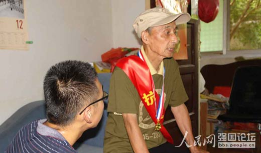 2015年適逢中國(guó)人民抗日戰(zhàn)爭(zhēng)暨世界反法西斯戰(zhàn)爭(zhēng)勝利70周年,人民網(wǎng)作為獨(dú)家媒體支持推出“全國(guó)大學(xué)生紀(jì)念抗戰(zhàn)勝利70周年尋訪活動(dòng)”,引導(dǎo)青年大學(xué)生主動(dòng)、自覺地在社會(huì)實(shí)踐中學(xué)習(xí)“歷史課”,緬懷抗戰(zhàn)先烈,傳承革命精神。在尋訪活動(dòng)中,不少團(tuán)隊(duì)對(duì)抗戰(zhàn)老兵進(jìn)行采訪,記錄老兵們鮮為人知的抗戰(zhàn)故事。