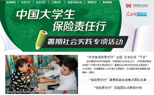 本次活動(dòng)從全國(guó)27個(gè)省市100多所高校選拔出100支入圍團(tuán)隊(duì),在暑期分別以支教、環(huán)保、醫(yī)療、調(diào)研等形式服務(wù)鄉(xiāng)村,提高當(dāng)?shù)鼐用癜踩庾R(shí),提升社會(huì)對(duì)安全教育問(wèn)題的關(guān)注,同時(shí)開(kāi)展調(diào)研,了解基層保險(xiǎn)保障相關(guān)情況。各團(tuán)隊(duì)實(shí)踐期間在人民網(wǎng)強(qiáng)國(guó)社區(qū)活動(dòng)專區(qū)實(shí)時(shí)播報(bào)實(shí)踐進(jìn)程,發(fā)回稿件數(shù)千篇。大學(xué)生們積極走入社會(huì)、服務(wù)基層的實(shí)際行動(dòng)贏得50萬(wàn)網(wǎng)友為他們“點(diǎn)贊”。