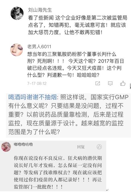 據(jù)長生生物年報顯示,2017年長春長生公司凍干人用狂犬疫苗簽發(fā)數(shù)量為355萬人份,占據(jù)國內(nèi)市場的近四分之一。對于有“前科”、市場占有率又非常高的疫苗生產(chǎn)商,網(wǎng)友心存疑慮。網(wǎng)友“糊涂泥塵”說:我可以相信“本次飛行檢查的所涉及的產(chǎn)品均有效控制”,那么其他批次都是符合“規(guī)范”?這次飛行檢查外的產(chǎn)品都確定合格?