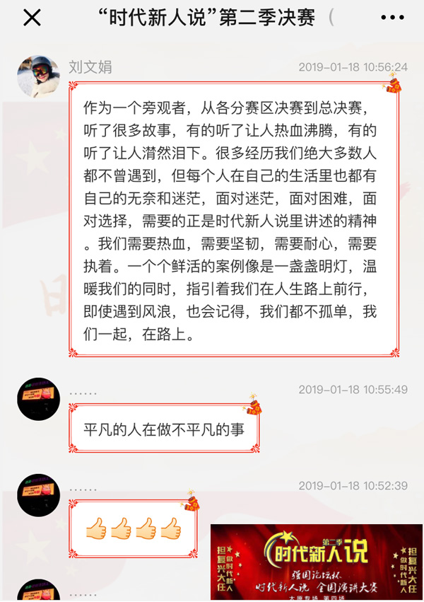 “每個(gè)人在生活里也都有無奈,面對(duì)迷茫,面對(duì)困難,需要的正是時(shí)代新人說里講述的精神!本W(wǎng)友劉文娟留言說。