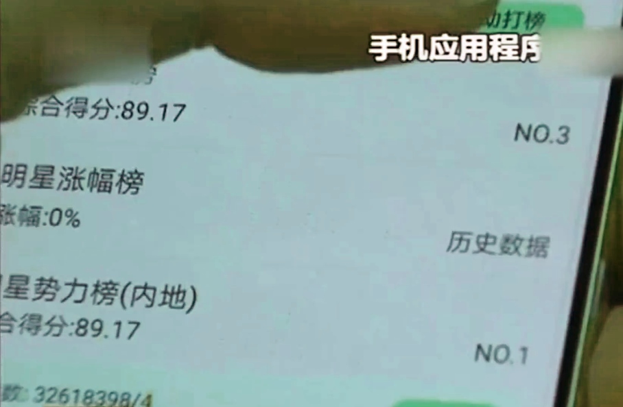 流量明星數(shù)據(jù)造假所用手機應(yīng)用程序(央視截圖)