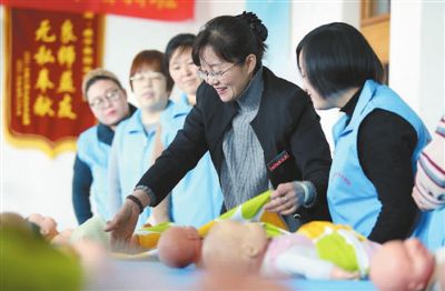 職業(yè)培訓(xùn)學(xué)校老師在給學(xué)員講解育嬰知識(shí)。(來(lái)源:新華社記者 王曉 攝)