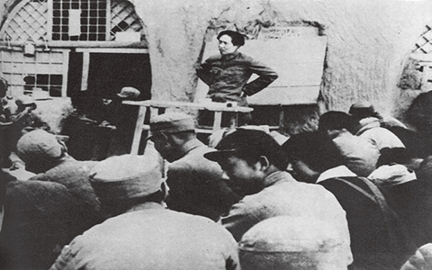毛澤東非常重視理論聯(lián)系實際這一馬克思主義學風的養(yǎng)成,強調(diào)必須始終堅持把馬克思主義與中國實際緊密結(jié)合起來。圖為毛澤東在為陜北公學學員講課。