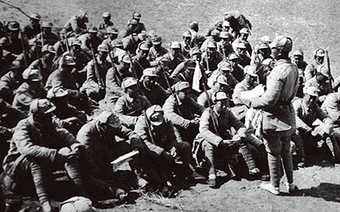延安整風期間我們黨強調(diào),反對主觀主義以整頓學風,反對宗派主義以整頓黨風,反對黨八股以整頓文風。圖為整風運動時,我軍某部連隊指導員在給戰(zhàn)士們講課。
