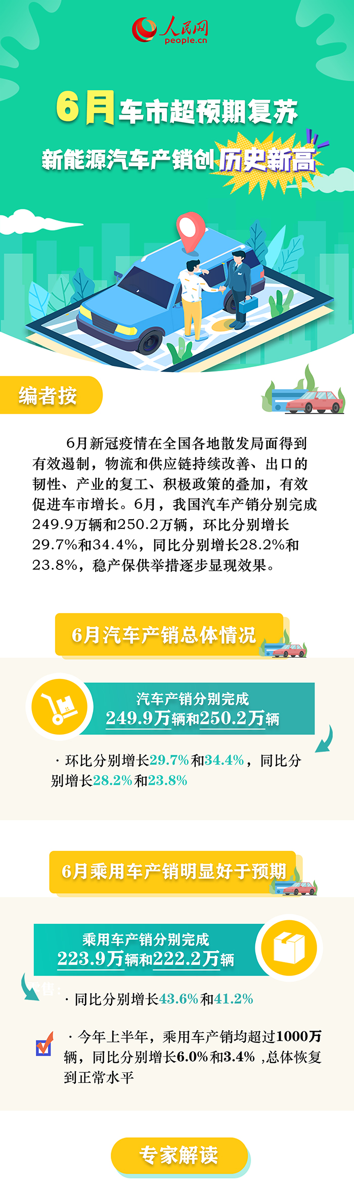 新聞數(shù)理化|穩(wěn)產(chǎn)保供措施持續(xù)顯效 6月汽車(chē)產(chǎn)銷(xiāo)同比增幅均超20%