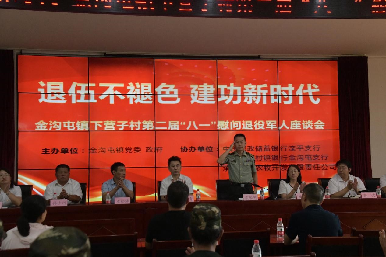 8月1日下午,灤平縣金溝屯鎮(zhèn)下營(yíng)子村聯(lián)合愛心企業(yè)中國(guó)郵政儲(chǔ)蓄銀行灤平支行、灤平盛陽村鎮(zhèn)銀行金溝屯支行和承德久財(cái)農(nóng)牧開發(fā)有限責(zé)任公司共同舉辦了“退伍不褪色 建功新時(shí)代”第二屆“八一”慰問退役軍人座談會(huì);顒(dòng)現(xiàn)場(chǎng),大家歡聚一堂,共同慶祝中國(guó)人民解放軍建軍95周年,共敘魚水深情,并為優(yōu)秀退役軍人頒發(fā)榮譽(yù)證書。 王海琦 郎朗 攝