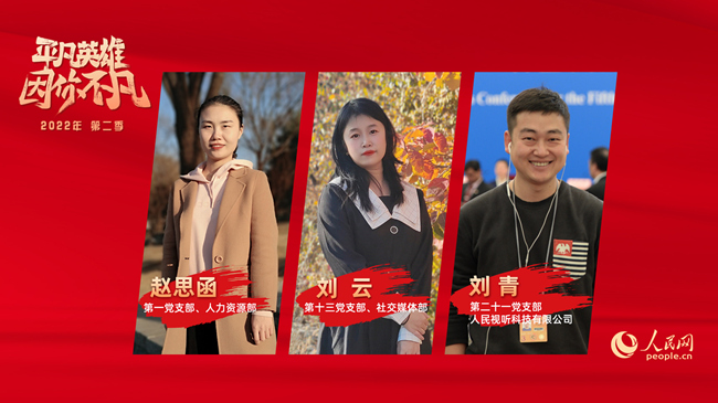 經(jīng)過入圍候選人在線上的精彩展示角逐,根據(jù)人民網(wǎng)黨委和管理層成員,黨支部書記、部門負責人代表,以及黨支部委員、黨員和群眾代表等30位評委現(xiàn)場打分,最終,來自第一黨支部、人力資源部的人事專員趙思函,第十三黨支部、社交媒體部短視頻組主編劉云,第二十一黨支部、人民視聽子公司視頻總監(jiān)劉青三位同志分別榮獲人民網(wǎng)2022年度第二季“平凡英雄”服務獎、創(chuàng)新獎和奮斗獎。同時,杜明明、燕帥、景玥、許維娜、楊伊、陳思、王亞微等七位同志獲得“平凡英雄”入圍獎。
